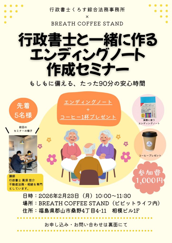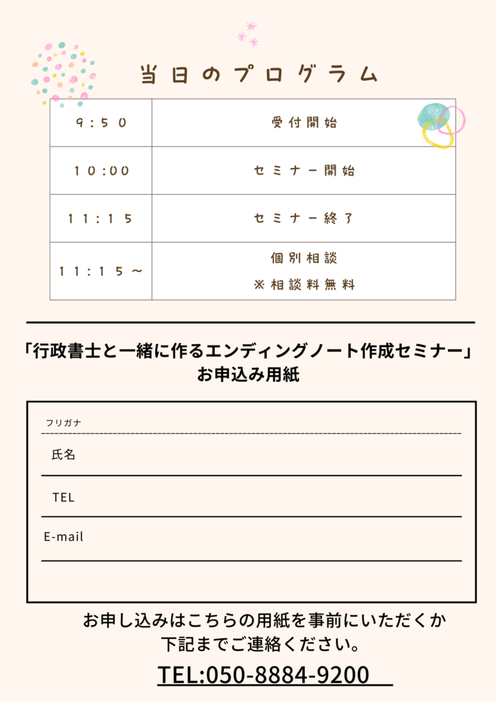 第二回エンディングノート作成セミナー開催のお知らせ