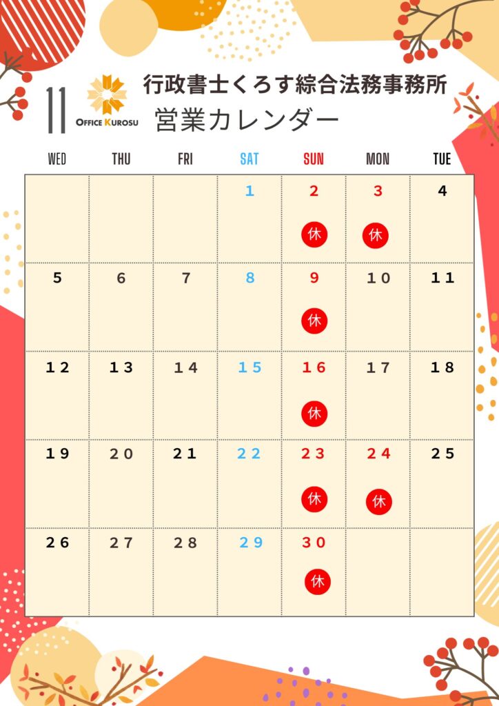 11月営業日のお知らせ